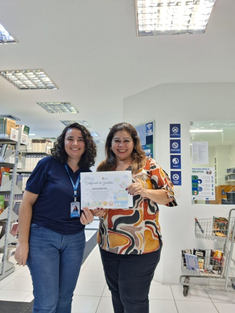 Ao fazer essa ponte, a biblioteca não apenas otimiza seu espaço e renova seu acervo, mas principalmente reforça seu compromisso ético, social e sustentável, junto à sociedade. Nesse contexto, fizemos a doação das publicações selecionadas para descarte à Fundação Peter Pan, representada por Ana Claudia Moura Lemos, Assessora de Governança da Instituição, que nos visitou para a coleta do material e fez a entrega do Certificado de Gratidão à Faculdade CDL. A bibliotecária Camila Costa Freitas fez a recepção e demonstrou a nossa felicidade em poder contribuir dessa forma.